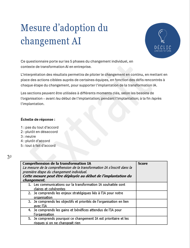 Le moins qu’on puisse dire, c’est que l’intelligence artificielle ne laisse personne indifférent. Entre enthousiasme débordant et rejet catégorique, les réactions sont plutôt tranchées! Certains y entrevoient des opportunités en termes de productivité et d’automatisation; d’autres s’en méfient, et y voient surtout les limites et enjeux éthiques importants. Cette révolution technologique amène son lot stress, avec des causes diverses selon le rôle ou la fonction occupée : développeur, entrepreneur et dirigeant d’entreprise, gestionnaires et superviseurs d’équipes, employés. Des réalités différentes, mais une réaction de stress de part et d’autre Du côté des développeurs, un phénomène commence à émerger : une forme de “token anxiety”. En apparence, les développeurs ont peut-être l’air d’avoir la vie facile – leur agent IA faisant le travail pendant qu’ils peuvent faire autre chose et vérifier de temps en temps le progrès de leur agent IA – mais, étant aux premiers rangs de l’adoption de la technologie, ils sont évidemment pris dans le tourbillon de la « course à l’IA ». Pour eux, il s’agit de s’assurer que l’agent travaille en continu – ne pas manquer de token avant la fin de la journée, optimiser ses prompts… Et puisque tout le monde roule à vitesse grand V, tout cela finit par être stressant! Du côté des entrepreneurs, la pression est ailleurs, mais tout aussi présente. La vitesse des changements crée chez certains une forme « d’état d’urgence ». Certains se demandent s’ils sont déjà en retard, si leur modèle d’affaires est en train de devenir obsolète, ou bien qu’ils ne sentent pas leur business prête pour une telle transformation, peuvent avoir peur des conséquences s’ils n’embarquent pas immédiatement. Et à l’inverse… chez d’autres, ça crée une résistance, du type « Je pense que nous pouvons nous distinguer de la concurrence en demeurer 100% humain – je n’aime pas l’idée de l’artificiel… » Les gestionnaires et superviseurs, eux, jouent un rôle clé dans l’adoption de cette nouvelle technologie. Pourtant, les organisations ne doivent pas oublier qu’ils sont aussi des « employés » et vivent eux-mêmes leurs propres réactions face à tous ces bouleversements… leur propre ouverture ou pas, leur propre peur ou pas – en plus de celles qu’ils reçoivent et doivent accueillir et gérer de la part de leur équipe. Enfin, chez les employés, on observe un mélange fascinant. Curiosité : « je n’y connais rien, mais ça m’intéresse de comprendre cela puisque vraisemblablement, ça va faire partie de mon avenir professionnel » Engouement : je suis motivé à me former – les gains potentiels pour moi sont immenses… productivité, amélioration de la qualité, etc. Craintes et inquiétudes diverses : qu’est-ce que ça veut dire pour moi professionnellement ? Et si je n’étais pas capable de suivre la cadence ??? Est-ce que ça pourrait me faire perdre mon emploi? Cela a pour résultat de créer des positions souvent très tranchées : pour ou contre. Un point commun : l’inconnu Face à tout ce stress… Rappelons-nous une chose : il n’y a pas 10 ans qu’on vit concrètement avec l’IA dans nos vies professionnelles… Et dans cette transformation, on est tous devant un point commun – l’inconnu. On peut faire ici un lien intéressant avec le modèle CINE (de Sonia Lupien) : C ontrôle I mprévisibilité N ouveauté E go L’IA coche toutes les cases : perte de contrôle perçue – est-ce que je peux vraiment décider de ne pas utiliser l’IA si mon domaine d’expertise est en train d’évoluer avec celle-ci? imprévisibilité des impacts – qu’est-ce que ça va avoir comme effet dans 5 ans ? dans 2 ans ? L’an prochain… nouveauté constante – ça évolue en continu! menace (réelle ou perçue) à notre expertise Il n’est donc pas surprenant que les réactions soient aussi fortes. Au-delà du pour ou contre Ce qui est frappant, au-delà du pour ou contre l’IA, c’est la rigidité des réactions. Comme si nous avions besoin de nous positionner rapidement pour nous rassurer : fasciné et excité d’adopter ce qui a le potentiel d’être une des plus grande révolution technologique VS rejeter l’idée complètement… s’en protéger en la gardant le plus loin possible. Mais entre les deux, il me semble qu’il y a de la place pour la réflexion et le jugement. L’IA n’est peut-être pas seulement une révolution technologique. C’est aussi un révélateur de : notre tolérance à l’incertitude et l’inconnu notre besoin de contrôle notre rapport au changement et notre capacité d’adaptation Alors peut-être que la vraie question c’est de savoir comment on choisit de naviguer à travers ce changement? Comme toutes les transformations, une transformation IA réussie, ça ne se pilote pas juste avec des décisions, des processus et des outils – ça se pilote en prenant en considération ce que vivent les humains qui la traversent. Dans un contexte qui comporte autant d’inconnu que ce qu’on vit présentement, prendre le pouls de ses équipes devient donc essentiel. Pas une seule fois pour se donner bonne conscience et continuer à foncer... Mais tout au long de votre transformation – avant, pendant et après. Pour accompagner et vous ajuster. · Avant la transfo : Vos employés comprennent-ils pourquoi on veut implanter l’IA ? (i.e., êtes-vous « prêts » collectivement pour ce changement?) · Sont-ils ouverts à cela ? Ont-ils envie d’embarquer ? · Qu’ont-ils besoin d’apprendre ? De quelles ressources et outils ont-ils besoins? · Et une fois l’implantation effectuée - l’utilisent-ils réellement ? · Suite à l’implantation… est-ce que l’utilisation perdure ou était-ce une « mode passagère » ? C’est dans cette optique que nous avons développé un outil simple, 